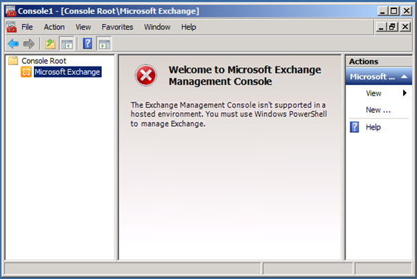 On the Exchange Servers only the Exchange Management Shell is available, there’s no Exchange Management Console. You can try to Add the snap-in in an MMC console, but it will fail: