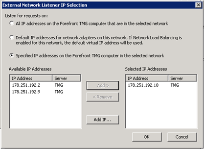 - On the Web Listener IP Address page, select External, and then click Select IP Addresses. ;