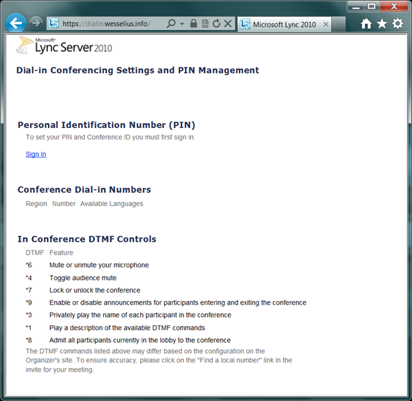 To test the web publishing rules in OWA you can navigate to the published web server, i.e. https://lync.wesselius.info/meet. You should see the meeting landing page, but can ignore the meeting URL error at this point of course: