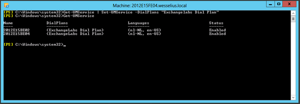 To assign the new dial plan to the UM services, both on the Client Access Server (UM Call Router) as well as on the Mailbox server. In an Exchange Management Shell windows enter the following commands: