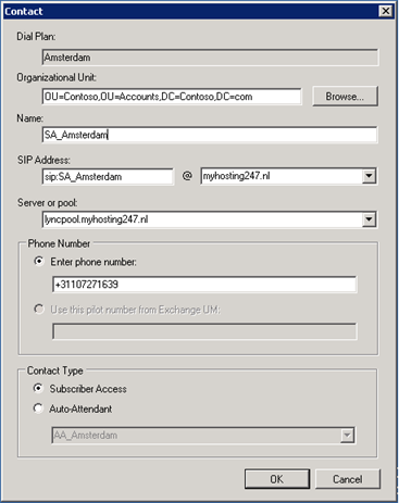 To create the necessary contact objects in Active Directory for the Auto Attendant and Subscriber Access you can use the OcsUmutil utility which can be found in the C:\Program Files\Common Files\Microsoft Lync Server 2010\Support directory on the Lync Front-End server.