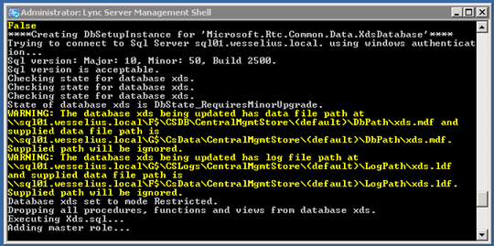 Install-CsDatabase -ConfiguredDatabases -SqlServerFqdn sql01.contoso.com –Verbose
