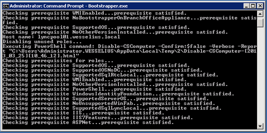 Once downloaded start the LyncServerUpdateInstaller.exe utility (elevated privileges!) and click Install Updates to start the installation. The installer will check which services are running on the box and only install the updates that are needed.
