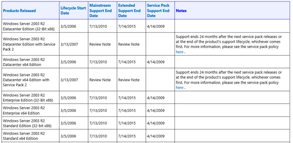 Windows 2003 (and R2) was often used to install Exchange 2003. Extended support for Windows Server 2003 ends on July 14, 2015 so there’s a little more than a year left if you’re running this Operating System.