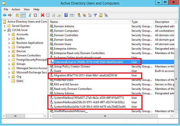 To recreate the Arbitration Mailboxes we first have to remove everything the accompanying user accounts, which can be found in CN=Users in Active Directory: