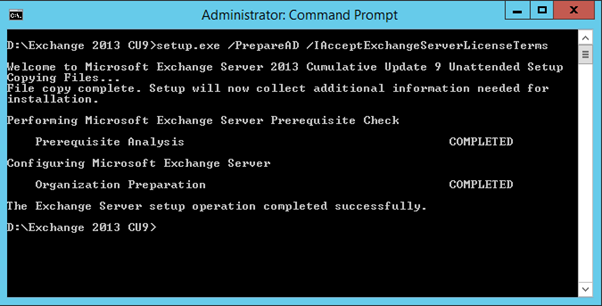 [05-11-2016 07:29:46.0035] [0] RuntimeAssembly was started with the following command: ‘/PrepareAD /IAcceptExchangeServerLicenseTerms /sourcedir:E:\SW_DVD9_Exchange_Svr_2013w_SP1_MultiLang_Std_Ent_MLF_X19-35118’.