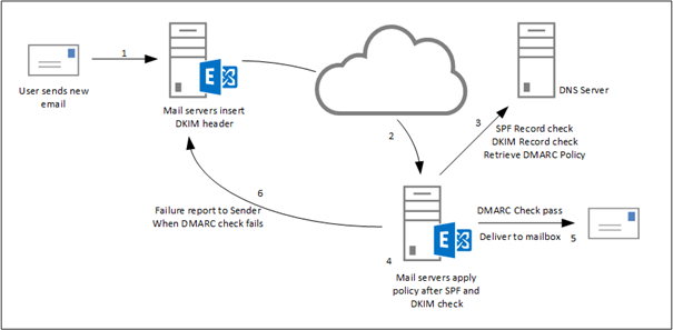 In the previous two blog posts I have discussed SPF and DKIM as a way of validating the authenticity of email messages. SPF is using an SPF record in public DNS where all legitimate outbound SMTP servers for a domain are listed. A receiving SMTP server can check this DNS record to make sure the sending mail server is allowed to send email messages on behalf of the user or his organization.
