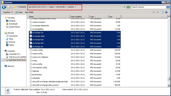 These XML files can be found in the directory D:\Setup\ServerRoles\Common (where “D” is the installation source, i.e. your DVD or network share) and are named Exchange-Serverrole.XML:
