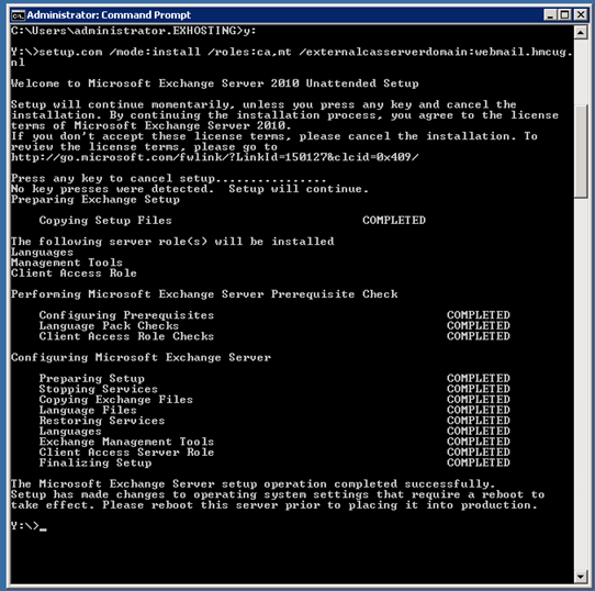 This will install the prerequisite software for the Exchange 2010 Client Access Server. Although the server not always requests to I personally always recommend rebooting the server after installing the prerequisite software.