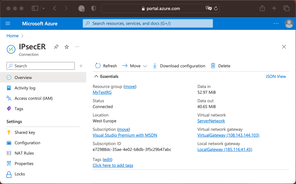 • Create the VPN Connection (under VirtualGateway  Connections)