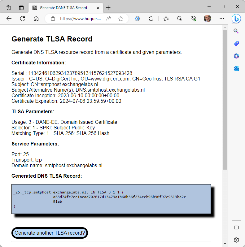 Note. If you have configured DANE for inbound email in Exchange Online, your MX record should be something like Exchangelabs-nl.y-v1.mx.microsoft.