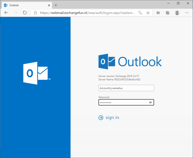 Exchange 2016 OWA Login