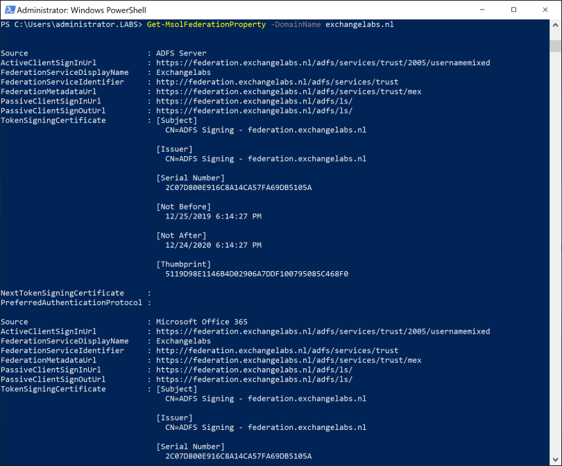 Get-MsolFederationProperty