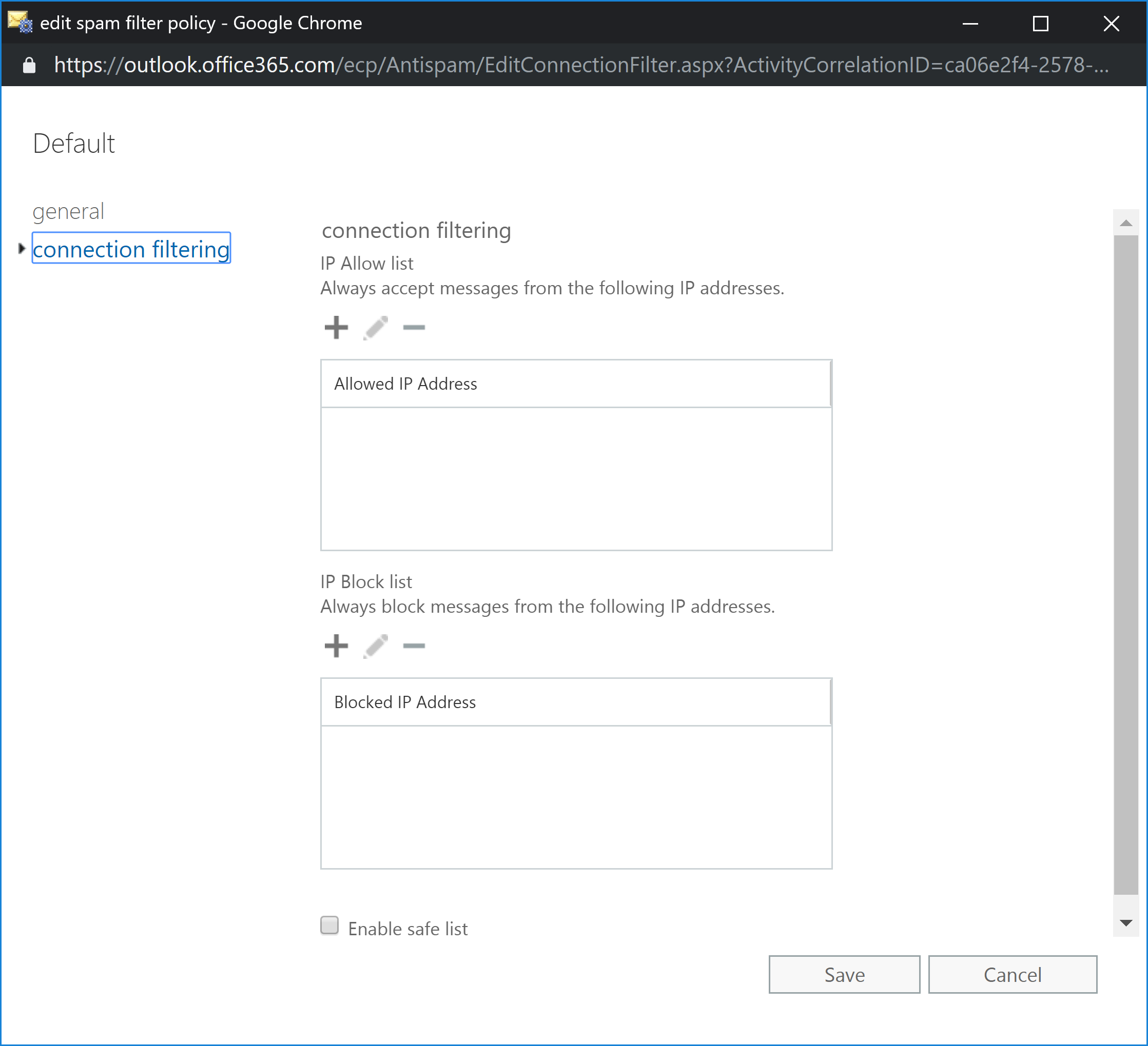 It can happen that you want to allow a particular mail server to deliver mail to your environment, even when its IP address is lists on block lists or denied access for some other reason. To allow this, you can add the IP address to the IP allow list. Vice versa, if there’s a mail server that sends malicious email that’s not blocked by the connection filter, you can add this IP address manually to the IP block list.