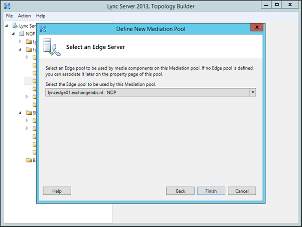 The Mediation pool is uses the lyncpool we’ve created earlier as the next hop server, so select this pool in the Next hop pool drop down box.