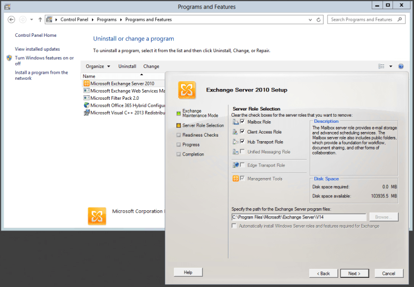 Uninstall Exchange 2010